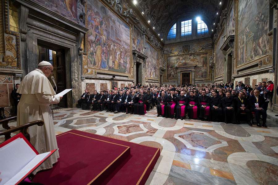 Pope Francis spoke to priests and lay people participating in an international convention on the daily work and operation of shrines. Held Nov. 27-29 at the Vatican, it brought together 586 participants from five continents. The group plans to hold similar conventions once every three years.